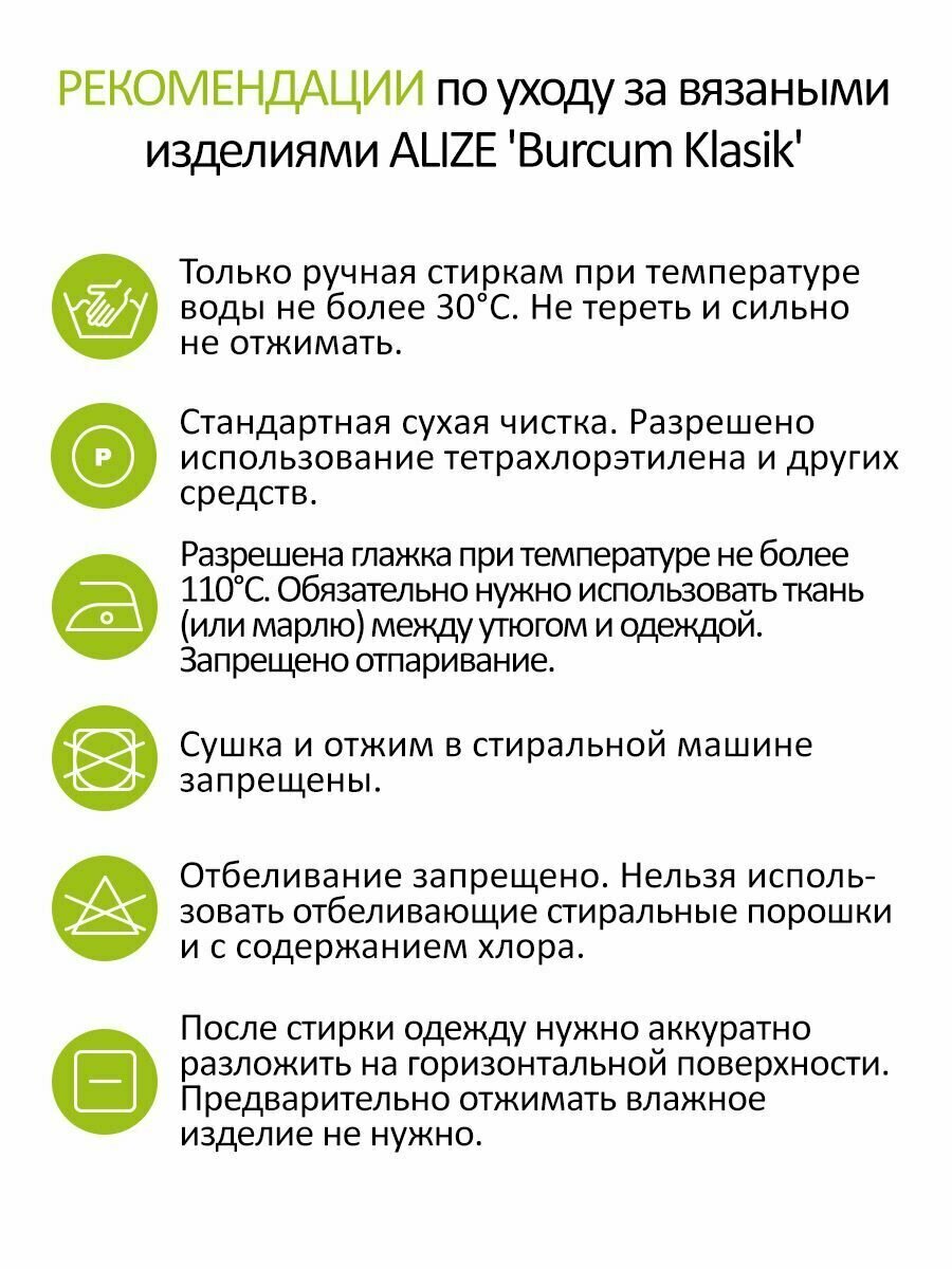 Пряжа для вязания ALIZE 'BURCUM KLASIK' 100гр. 210м (100% Акрил) (210 зеленый), 5 мотков 1 076 ₽