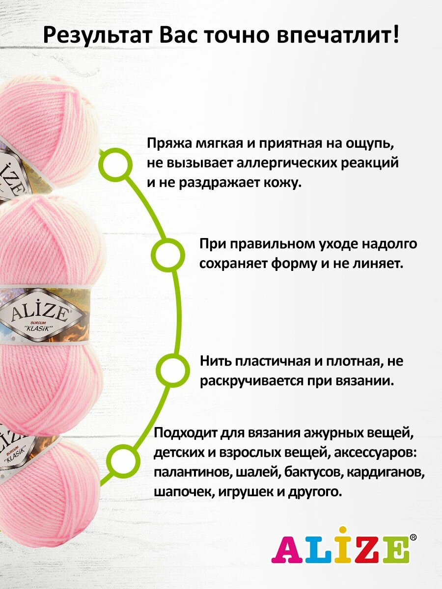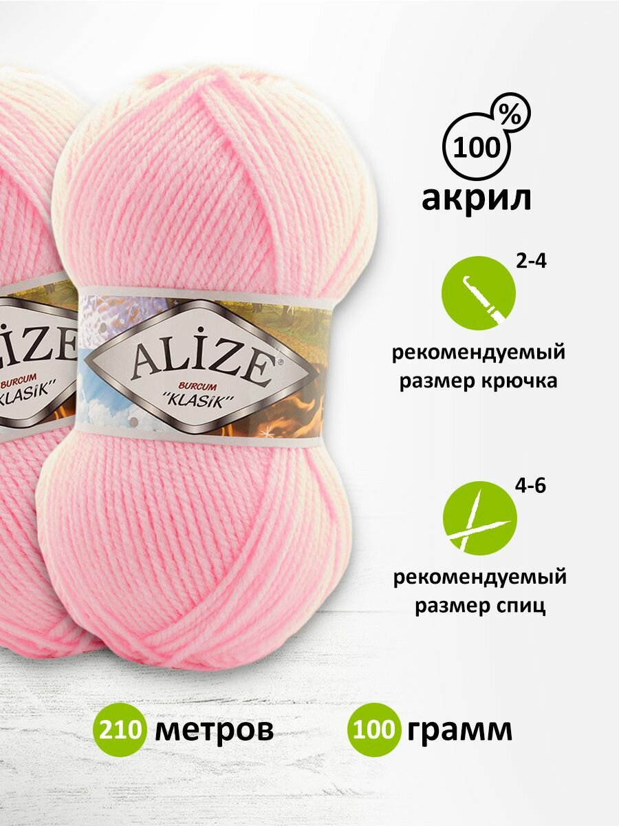 Пряжа для вязания ALIZE 'BURCUM KLASIK' 100гр. 210м (100% Акрил) (185 пастельно-розовый), 5 мотков информация: