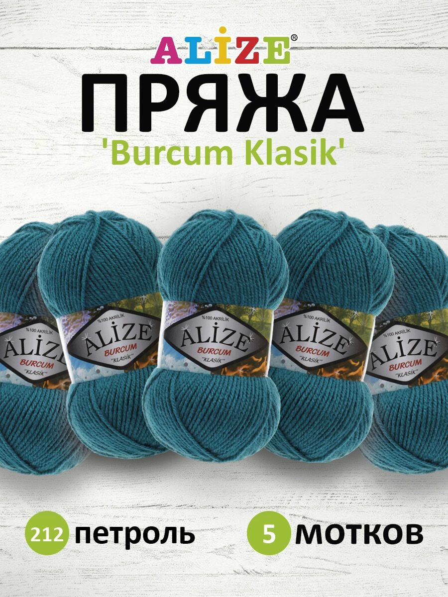 10 цен на Пряжа для вязания Alize Burcum Klasik 212 петроль, 100 г, 210 м, 5 штук