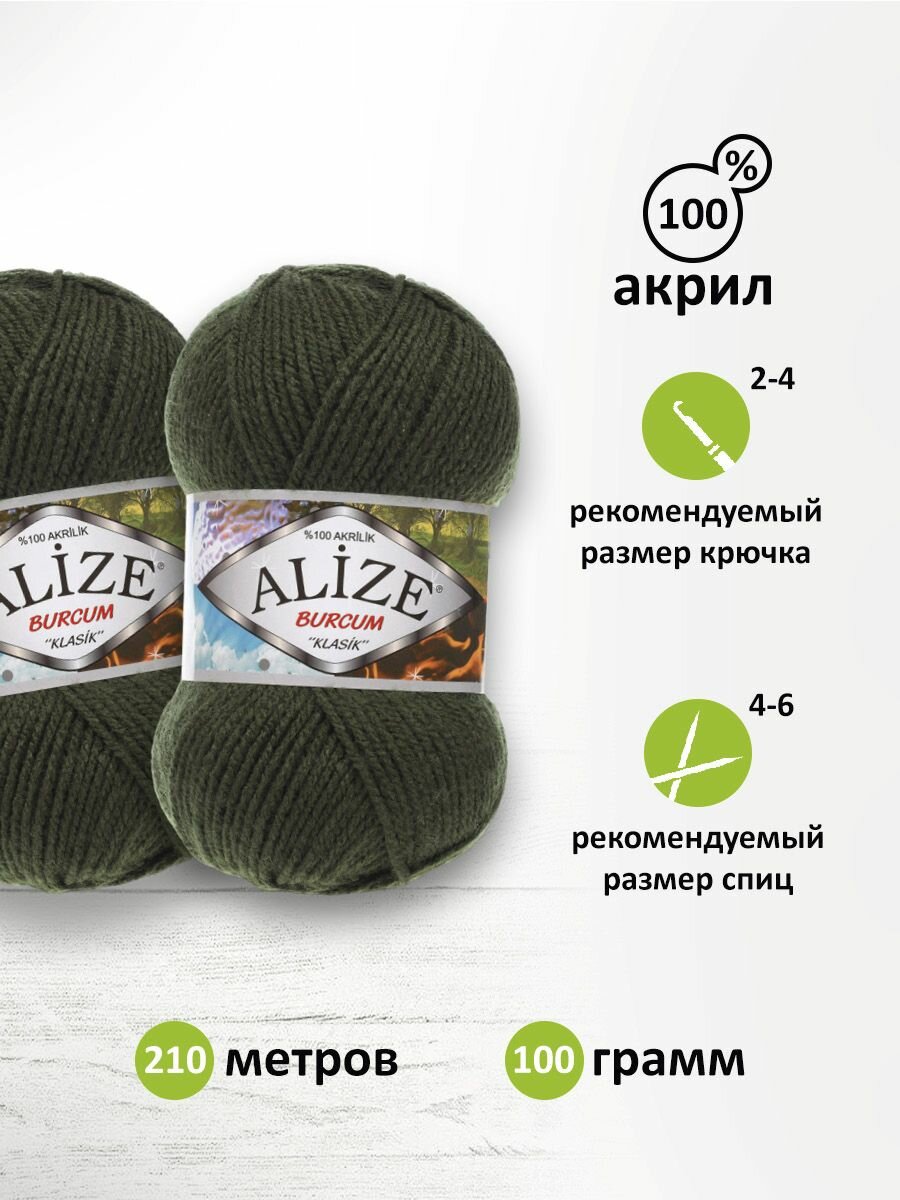 Пряжа для вязания ALIZE 'Burcum Klasik', 100г, 210м (100% Aкрил) (29 хаки), 5 мотков информация: