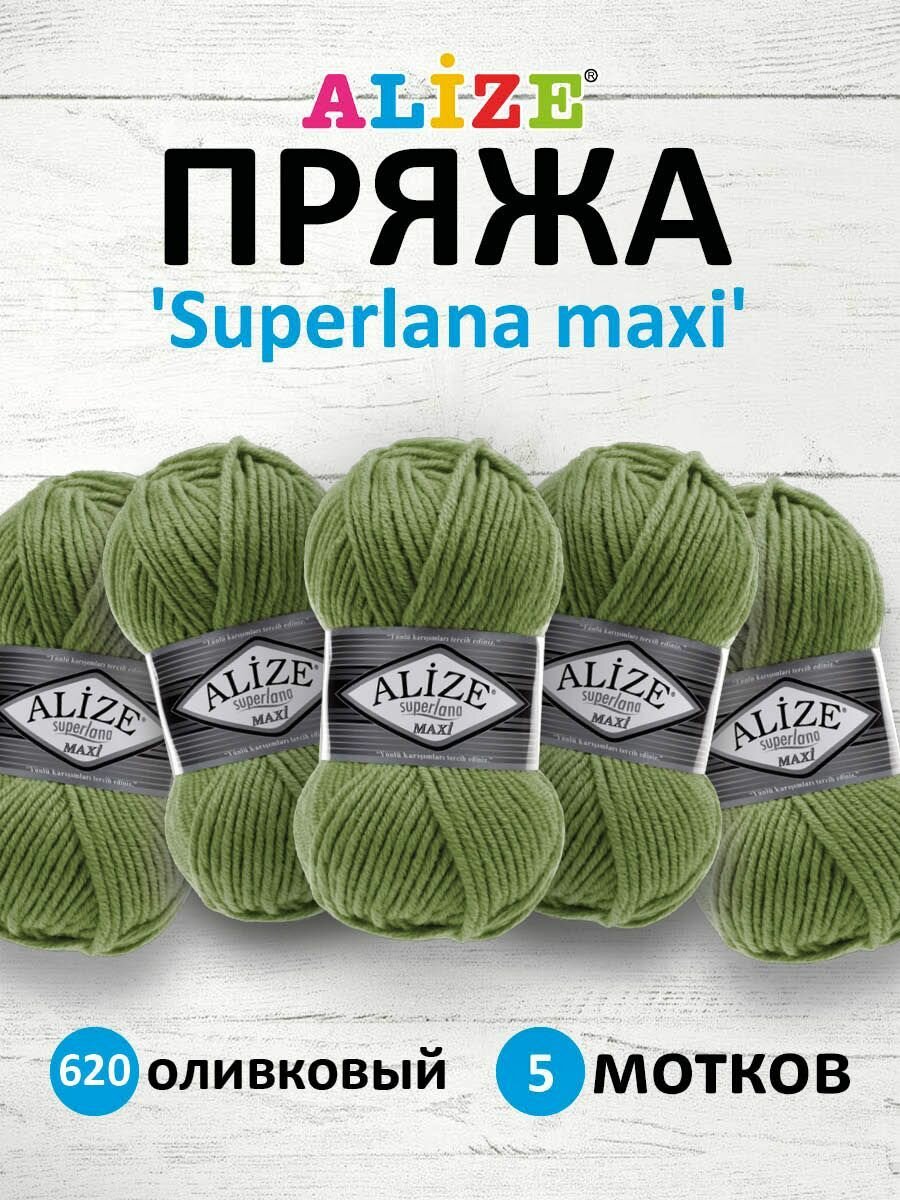 Пряжа для вязания ALIZE 'Superlana maxi', 100г, 100м (75% акрил, 25% шерсть), ТУ (620 оливковый), 5 мотков информация: