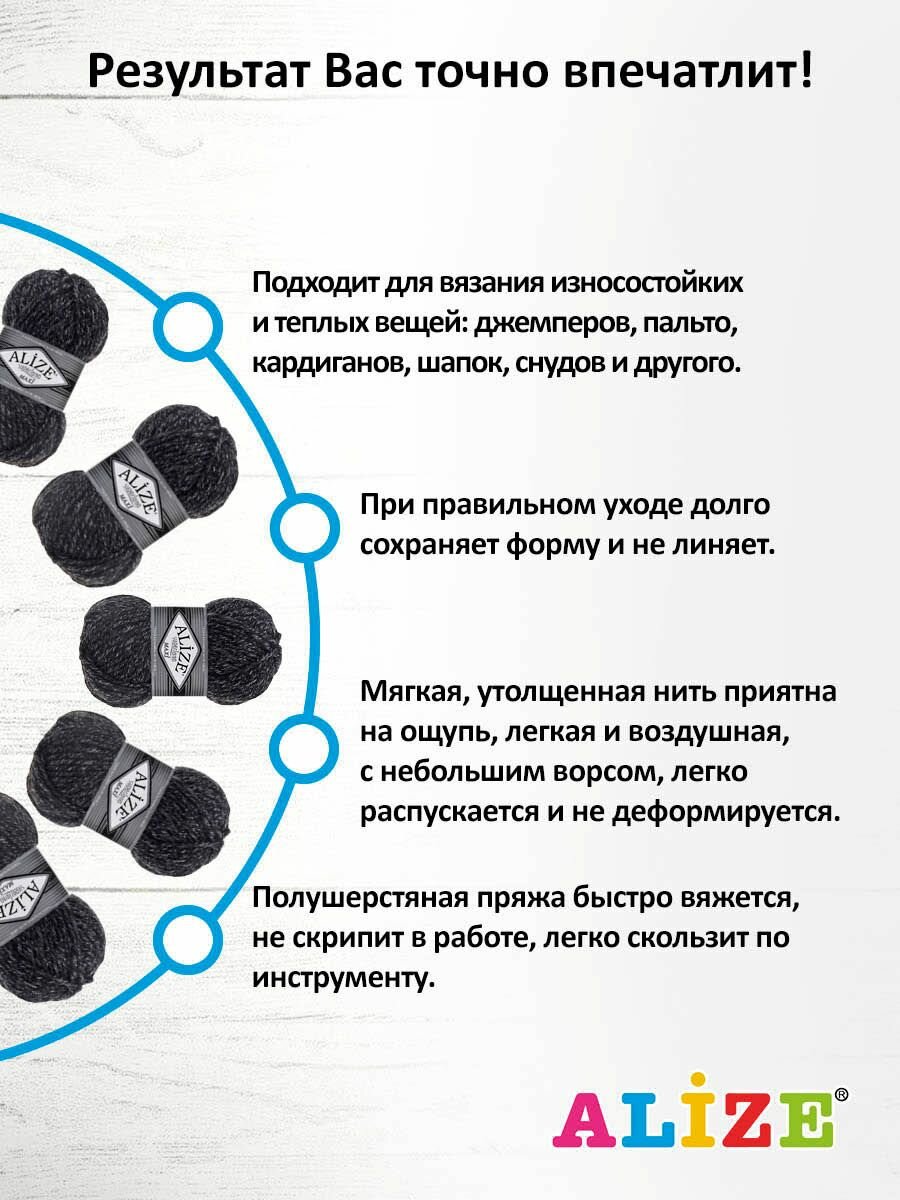 Отзывы на Пряжа для вязания ALIZE 'Superlana maxi', 100г, 100м (75% акрил, 25% шерсть), ТУ (800 антрацитовый жаспе), 5 мотков