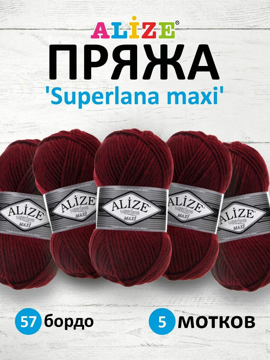 10 цен на Пряжа для вязания ALIZE 'Superlana maxi', 100г, 100м (75% акрил, 25% шерсть), ТУ (57 бордо), 5 мотков