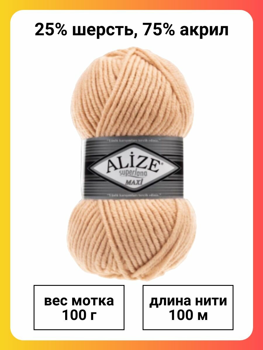 Пряжа Alize Superlana Maxi, 25 % шерсть, 75 % акрил, 100 г, 170 м, 1 шт, 541 норка