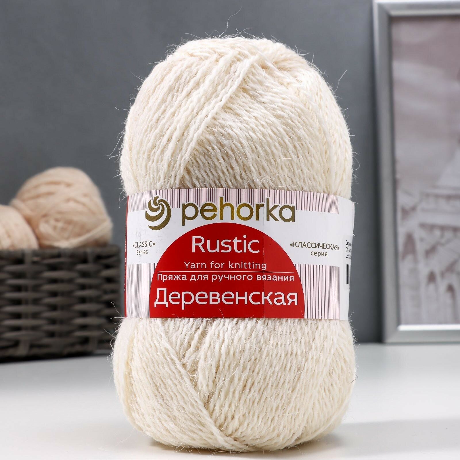 Пряжа Пехорка Деревенская белый (001), 100%шерсть, 250м, 100г, 1шт