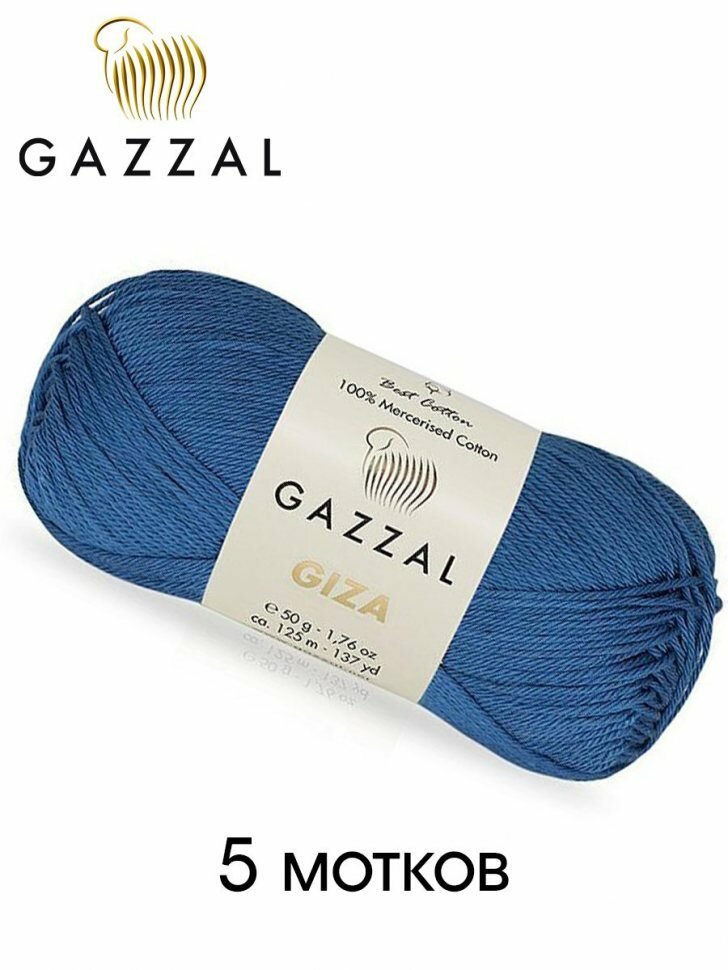 Пряжа Gazzal Giza джинса (2475), 100%мерсеризованный хлопок, 125м, 50г, 5шт информация: