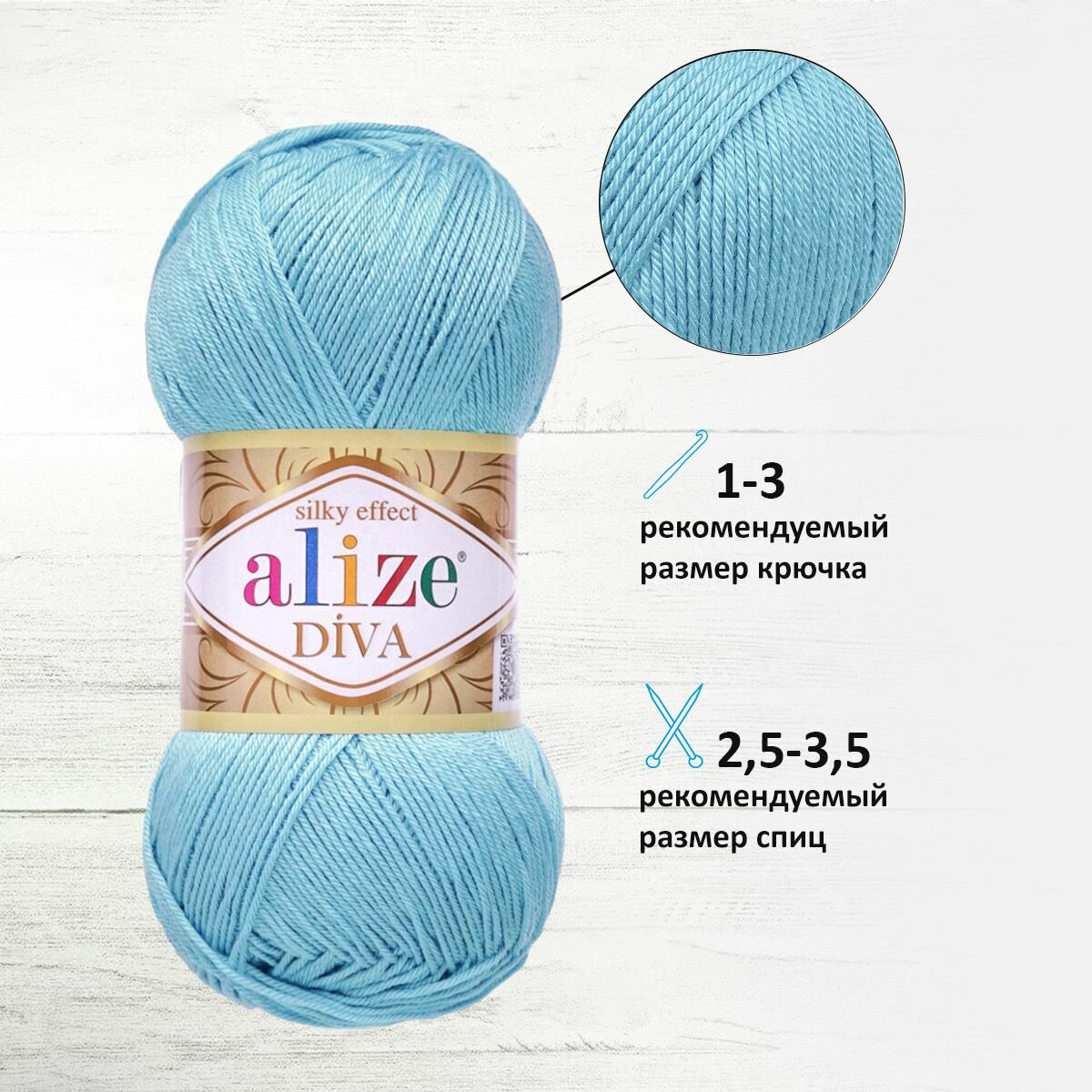 Пряжа Alize Diva светло-голубой (350), 100%микрофибра, 350м, 100г, 5шт