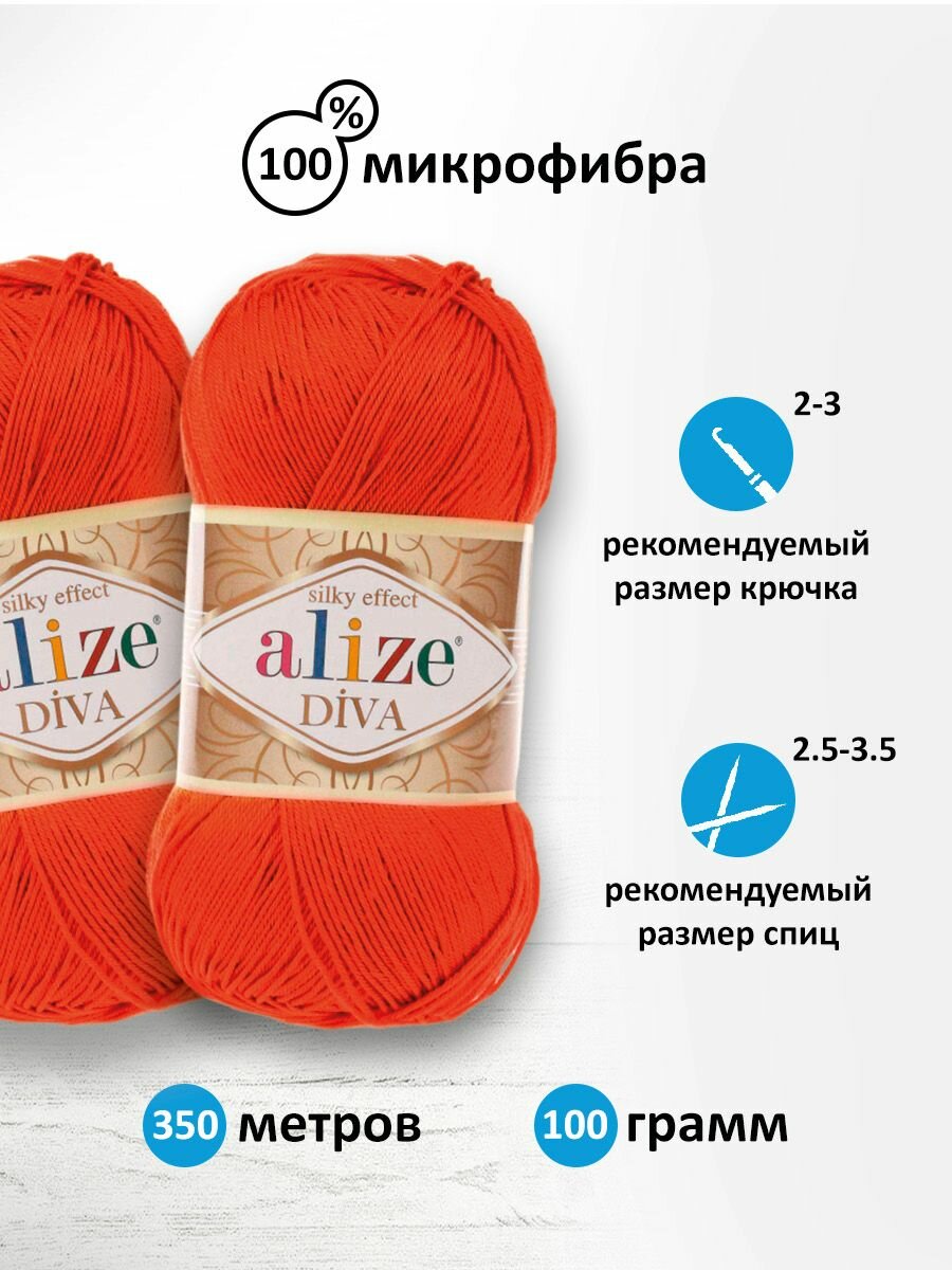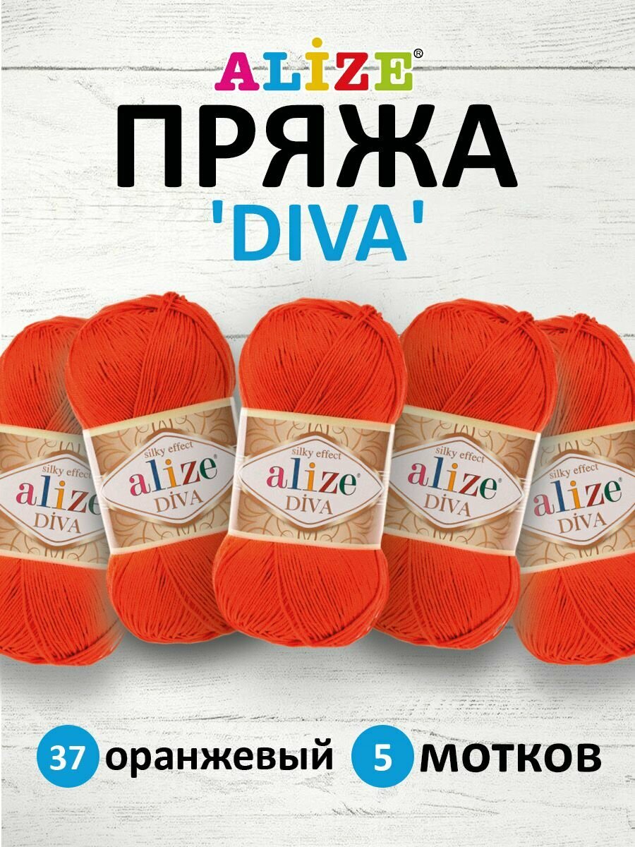 10 цен на Пряжа для вязания ALIZE 'Diva', 100г, 350м (100% микрофибра) ТУ (37 Оранжевый), 5 мотков