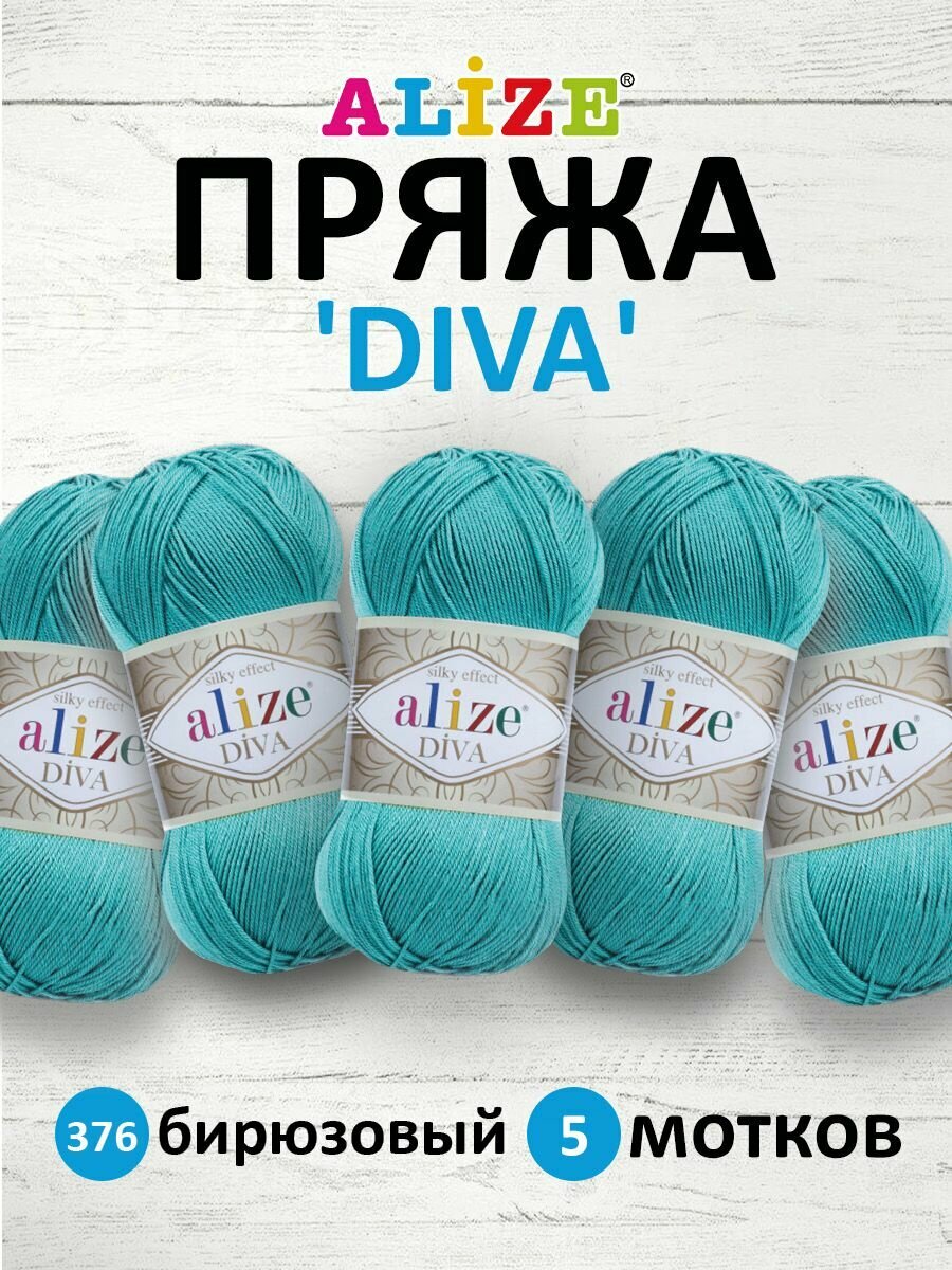 Пряжа для вязания ALIZE 'Diva', 100г, 350м (100% микрофибра) ТУ (376 бирюзовый), 5 мотков информация: