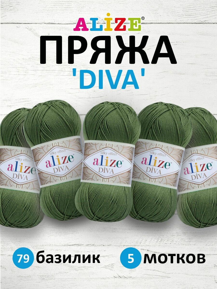 Пряжа ALIZE DIVA, базилик(зеленый - 79, 100% микрофибра акрил, 5 мотков, 100 г, 350 м.