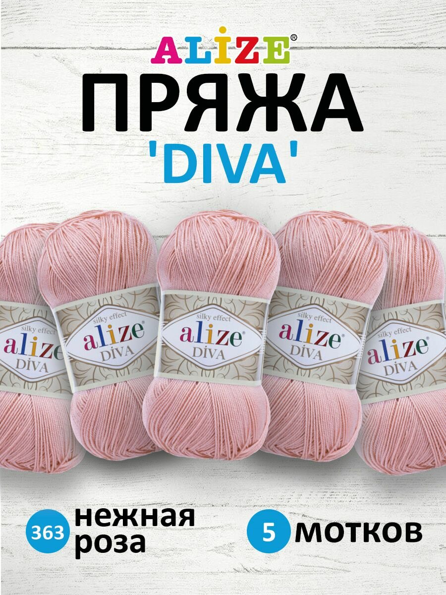 10 цен на Пряжа для вязания ALIZE 'Diva', 100г, 350м (100% микрофибра) ТУ (363 нежная роза), 5 мотков