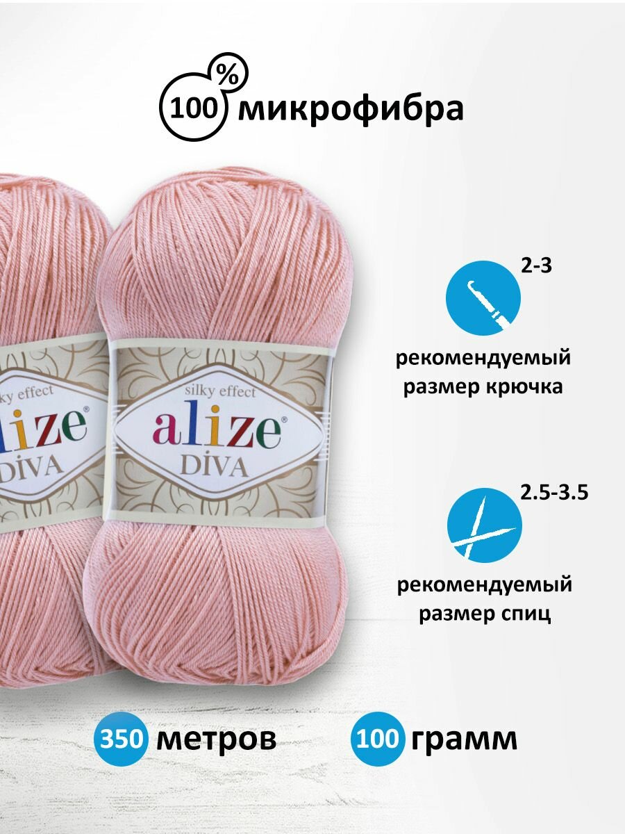 Пряжа ALIZE "Diva", 100 гр 350 м, 100% микрофибра, ТУ 363 нежная роза, 5 шт 1 317 ₽