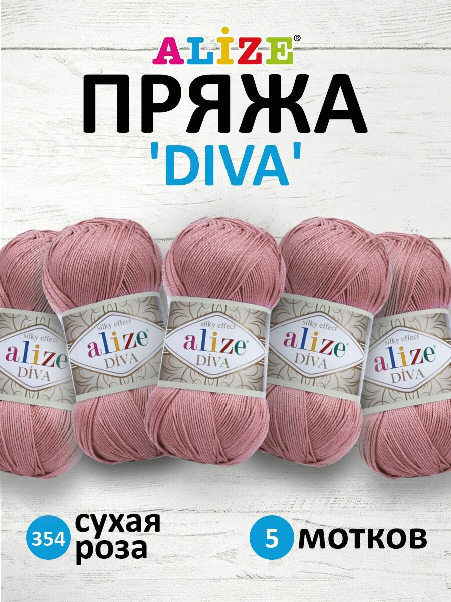 Пряжа Alize Diva сухая роза (354), 100%микрофибра, 350м, 100г, 5шт информация:
