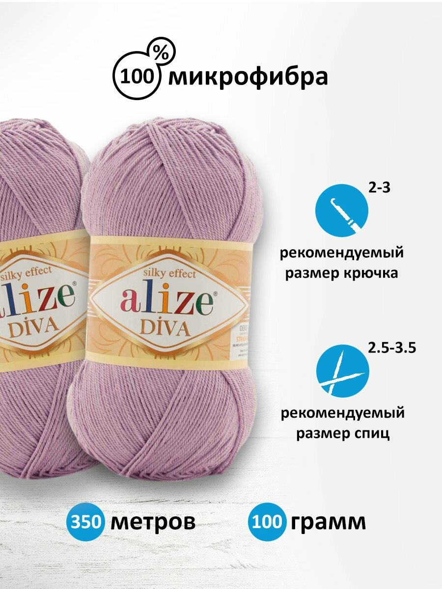 Пряжа Alize Diva - 1 шт, 505 пепельно сиреневый, 350м/100г, 100% микрофибра акрил /Ализе Дива/ 315 ₽
