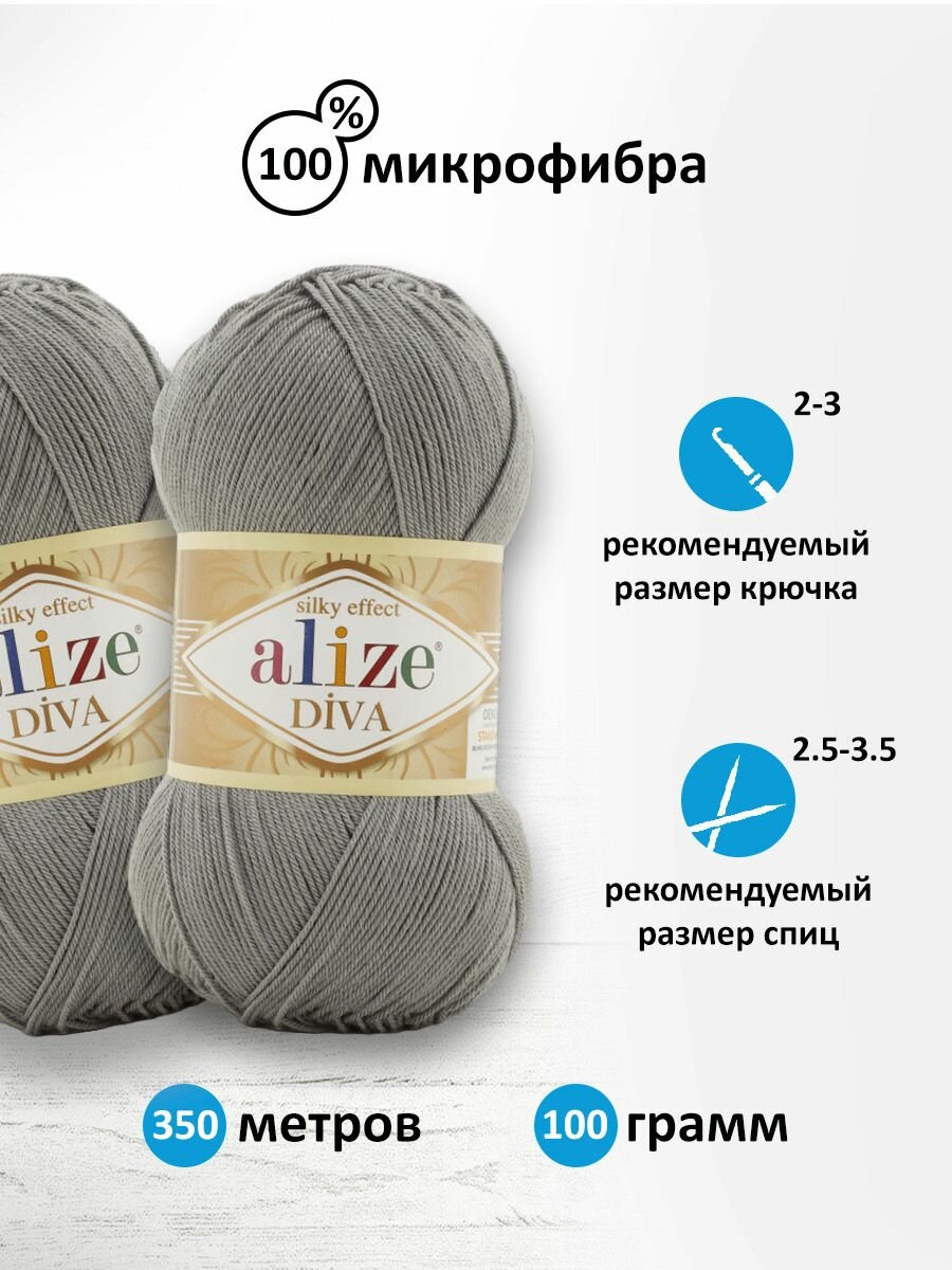 Пряжа для вязания ALIZE 'Diva', 100г, 350м (100% микрофибра) ТУ (87 серый), 5 мотков информация: