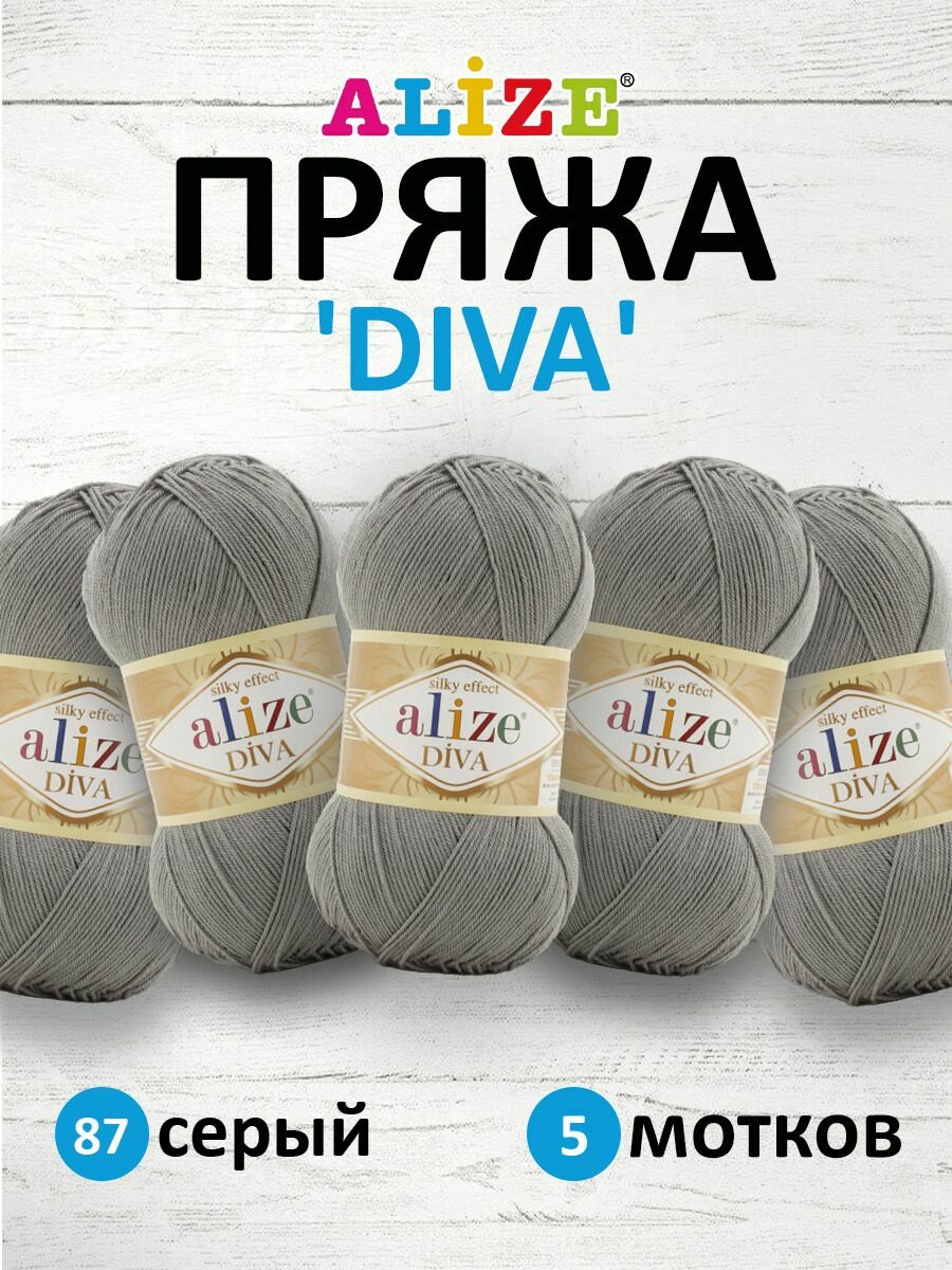 10 цен на Пряжа для вязания ALIZE 'Diva', 100г, 350м (100% микрофибра) ТУ (87 серый), 5 мотков
