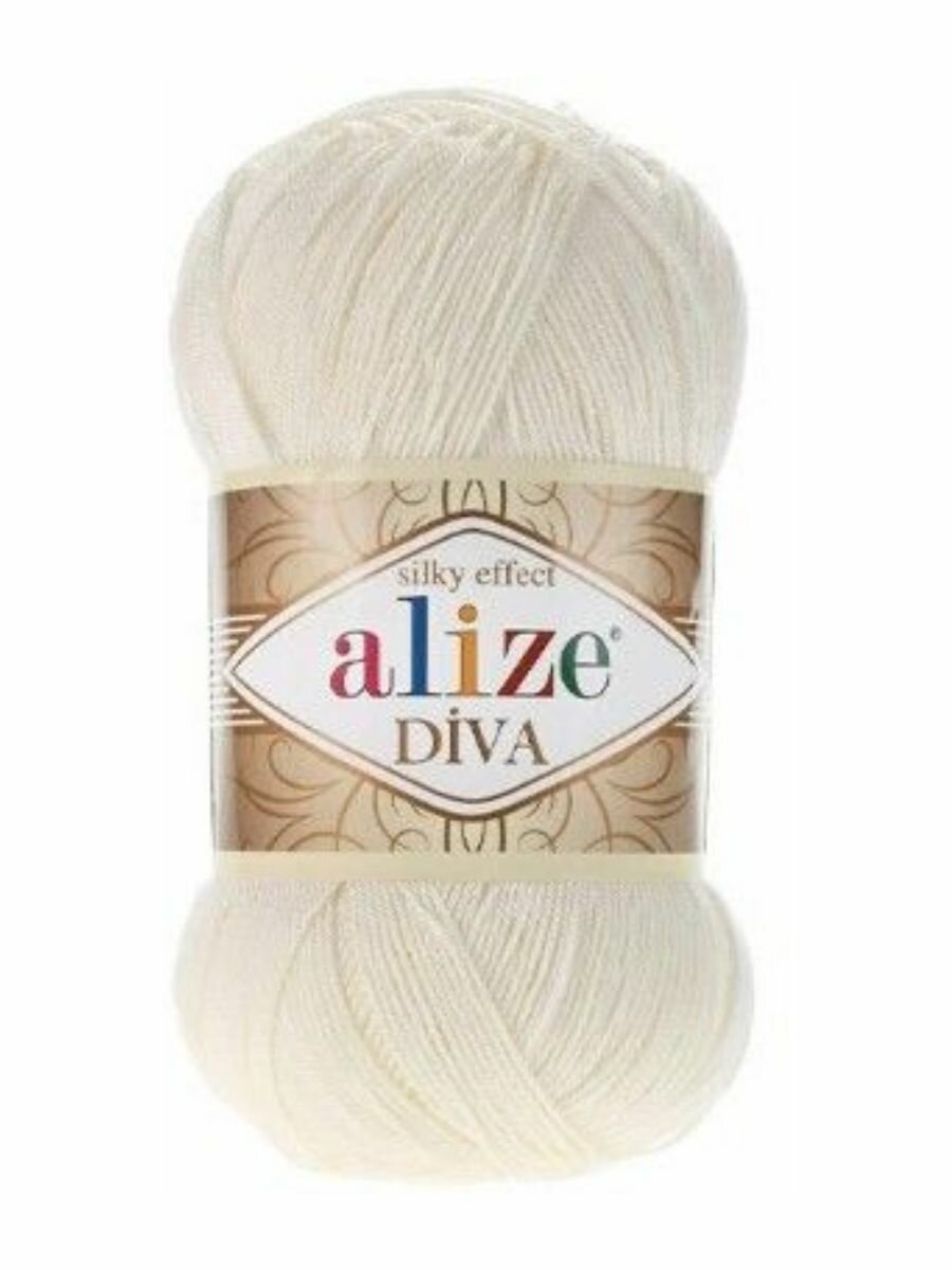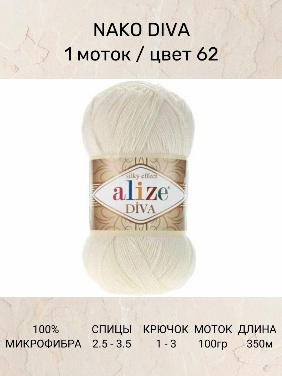 Пряжа Alize Diva молочный (62), 100%микрофибра, 350м, 100г, 1шт информация: