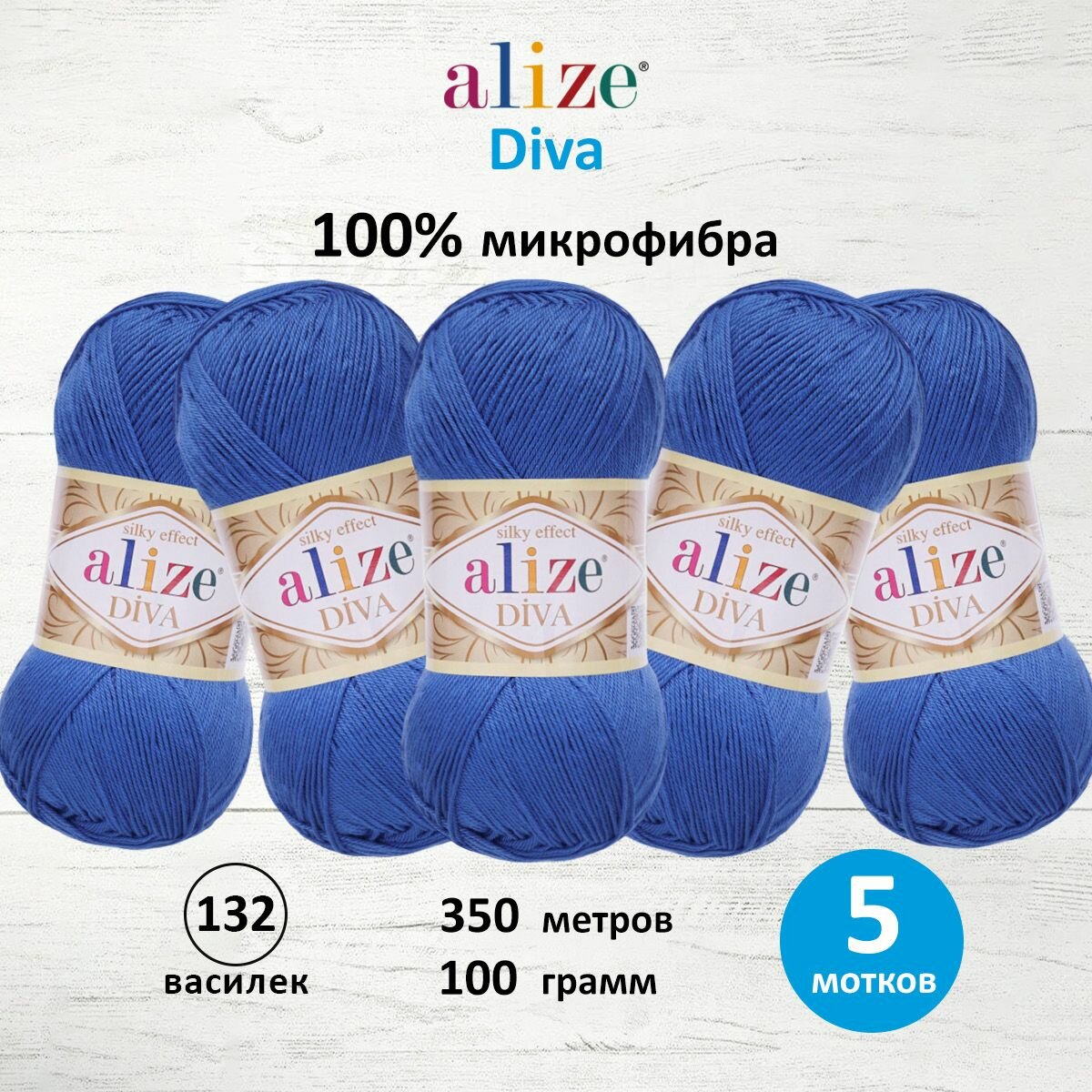 Пряжа для вязания ALIZE 'Diva', 100г, 350м (100% микрофибра) ТУ (132 василёк), 5 мотков информация: