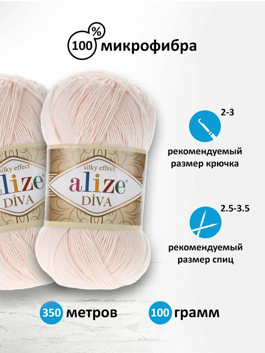 Пряжа для вязания Alize Diva 450 жемчужный, 100 г, 350 м, 5 штук 2 018 ₽