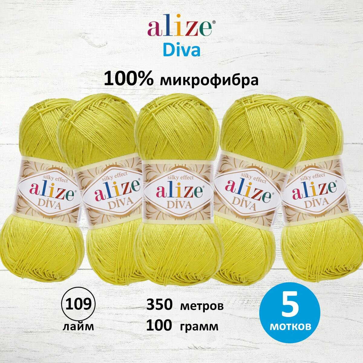 Пряжа Alize Diva лайм (109), 100%микрофибра, 350м, 100г, 5шт информация: