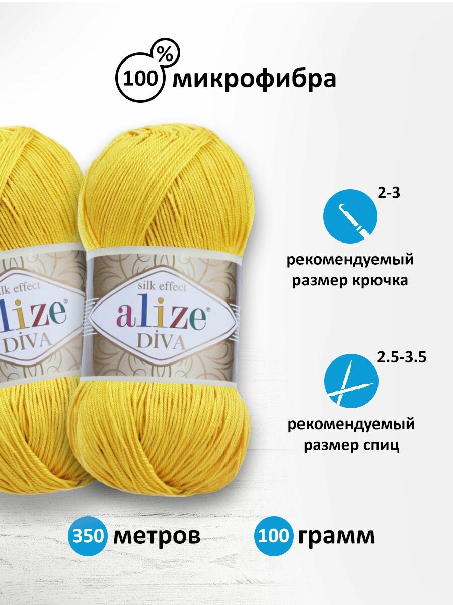 Пряжа ALIZE DIVA, светлый лимон - 187, 100% микрофибра акрил, 5 мотков, 100 г, 350 м.