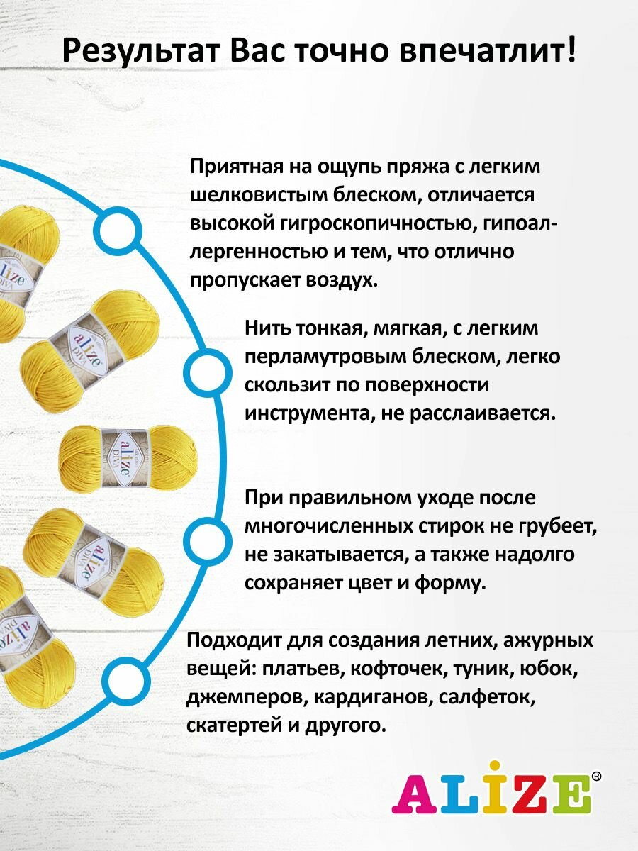 Отзывы на Пряжа для вязания ALIZE 'Diva', 100г, 350м (100% микрофибра) ТУ (110 цыпленок), 5 мотков