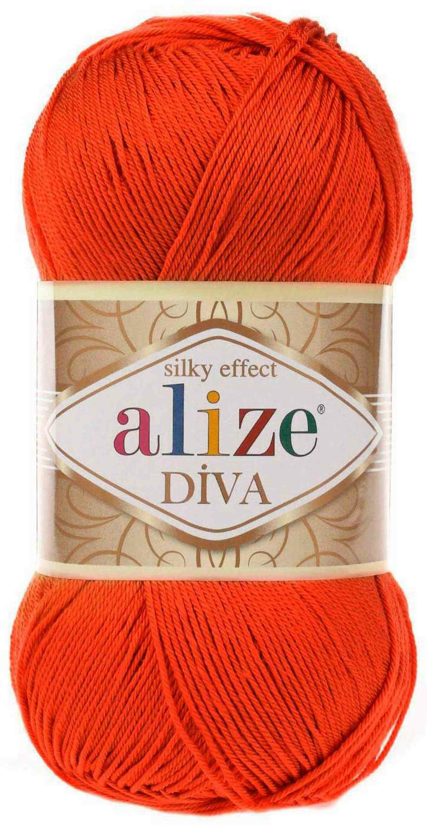 10 цен на Пряжа Alize Diva оранжевый (120), 100%микрофибра, 350м, 100г, 2шт