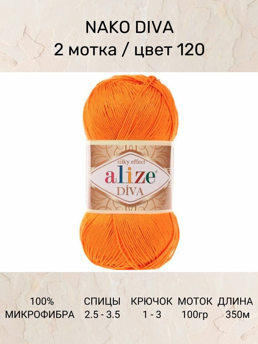 Пряжа Alize Diva оранжевый (120), 100%микрофибра, 350м, 100г, 2шт информация:
