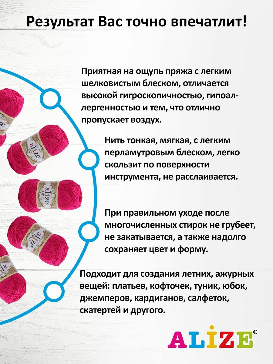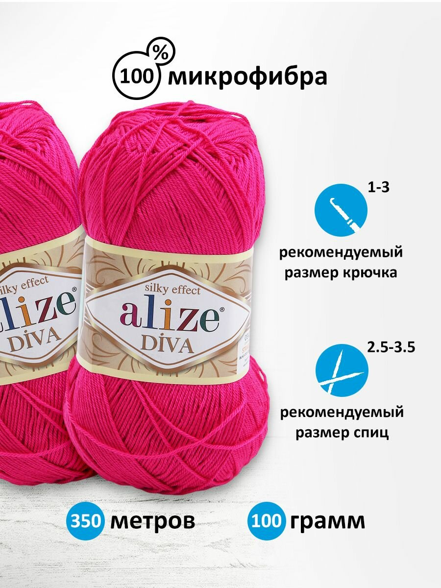 10 цен на Пряжа для вязания Alize 'Diva', 100г, 350м (100% микрофибра) ТУ (149 фуксия), 5 мотков