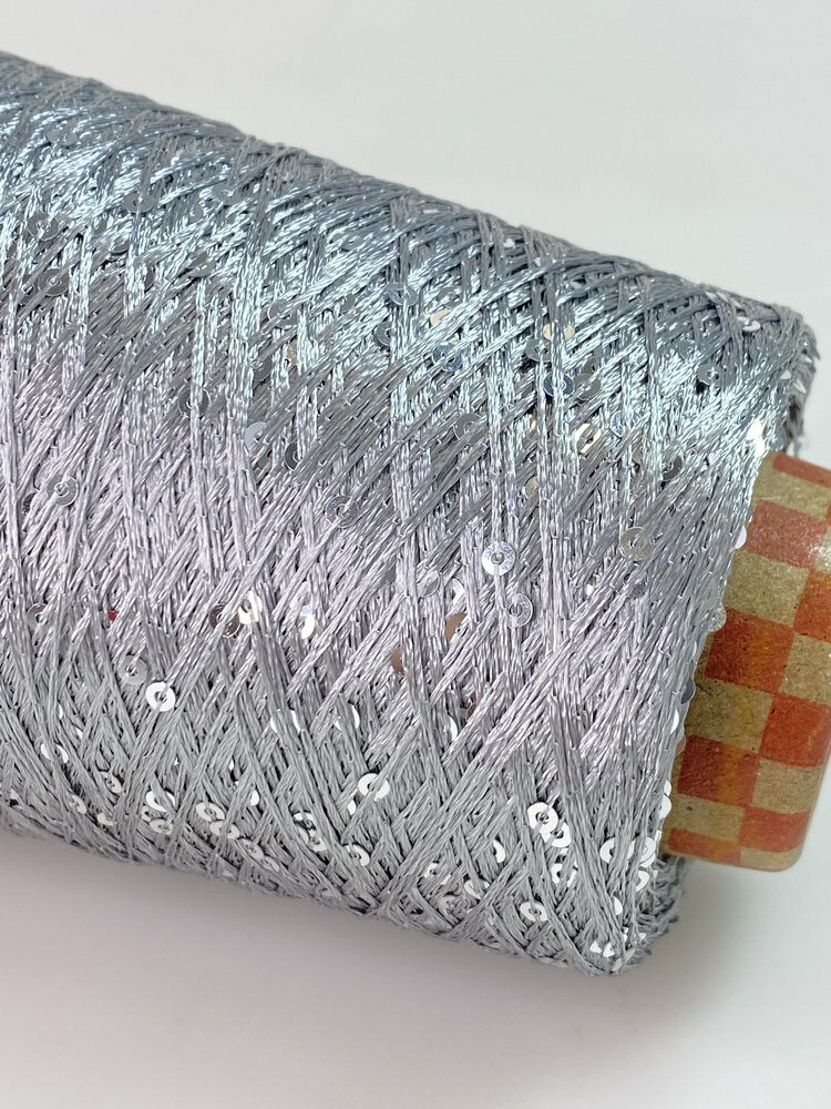 Пряжа для вязания с пайетками 3мм, 250 грамм , длина нити 660м/100гр , цвет светло-серый информация:
