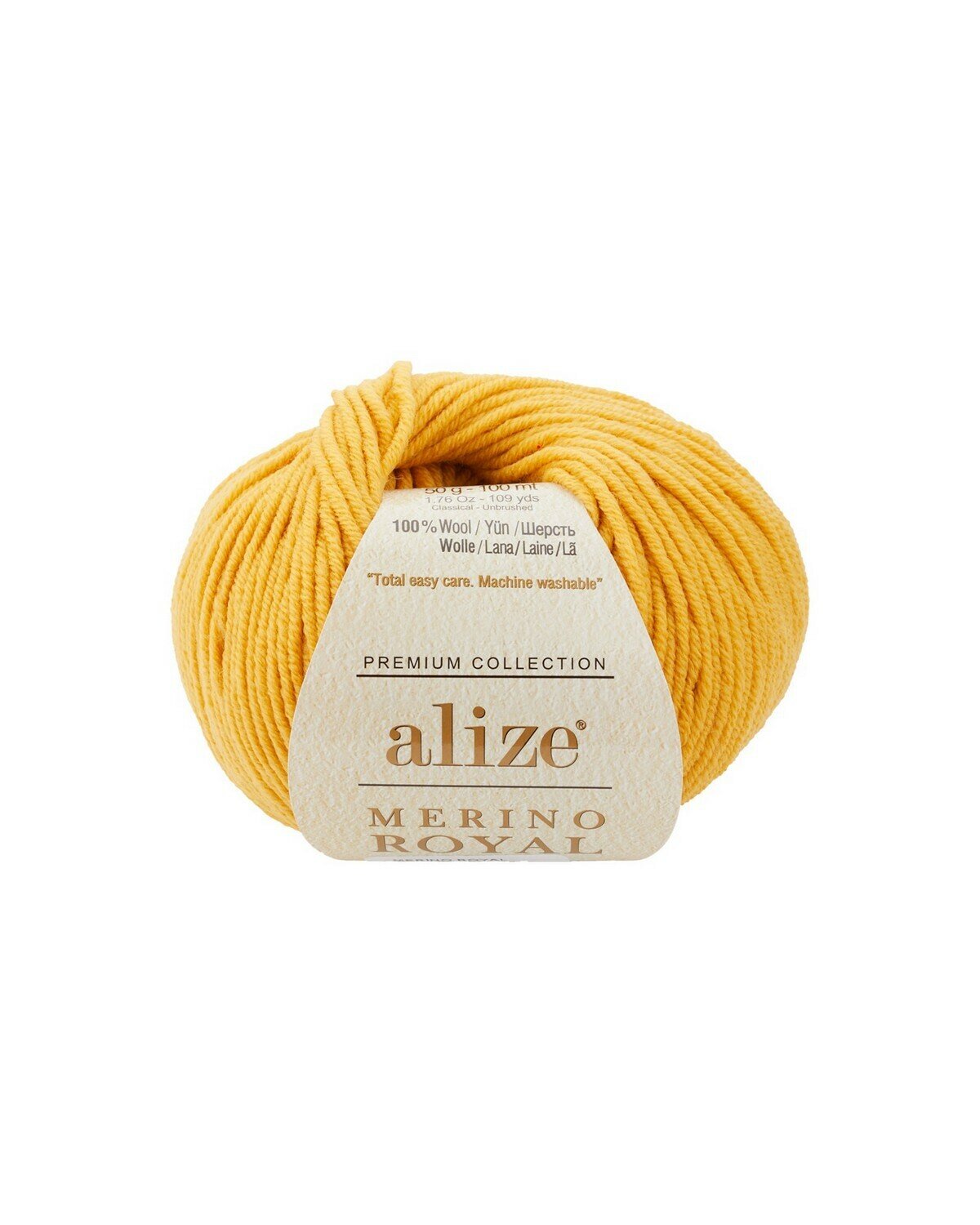 Мериносовая пряжа для вязания Alize Merino Royal, цвет 02 горчица, моток 50г, 100м, 10 мотков/упак