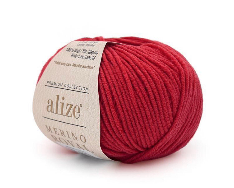 Отзывы на Пряжа Alize Merino royal красный (56), 100%шерсть, 100м, 50г, 2шт