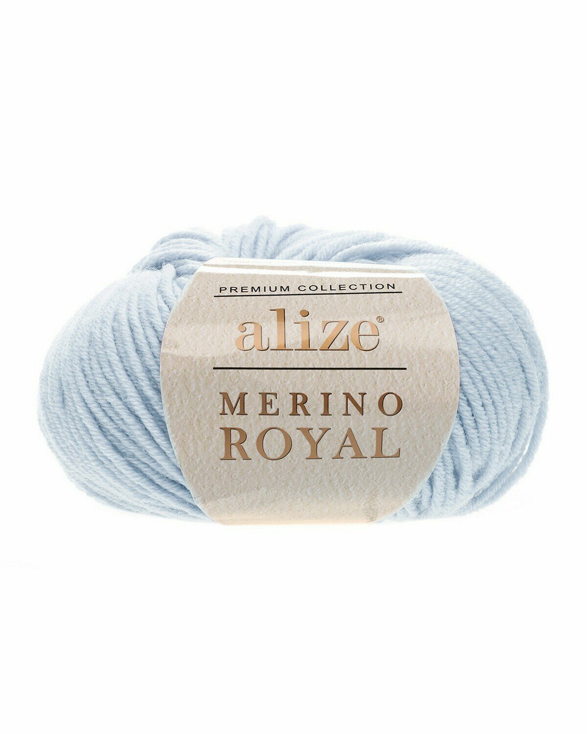 Мериносовая пряжа для вязания Alize Merino Royal, цвет 480 светло-голубой, моток 50г, 100м, 10 мотков/упак
