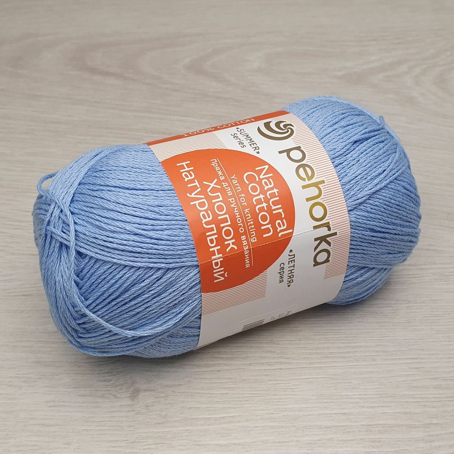 Пряжа Пехорка Хлопок натуральный голубой (005), 100%хлопок, 425м, 100г, 1шт