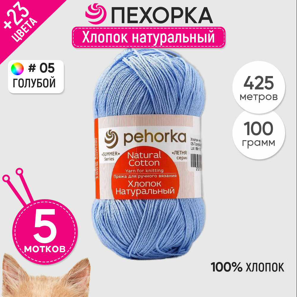 Пряжа 5 шт Пехорка "Хлопок натуральный Кабле" Голубой (05/25) информация: