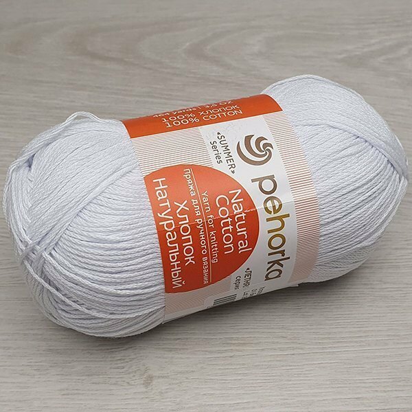 Пряжа Пехорка Хлопок Натуральный- 1 моток 01 белый 100% хлопок 425м/100г
