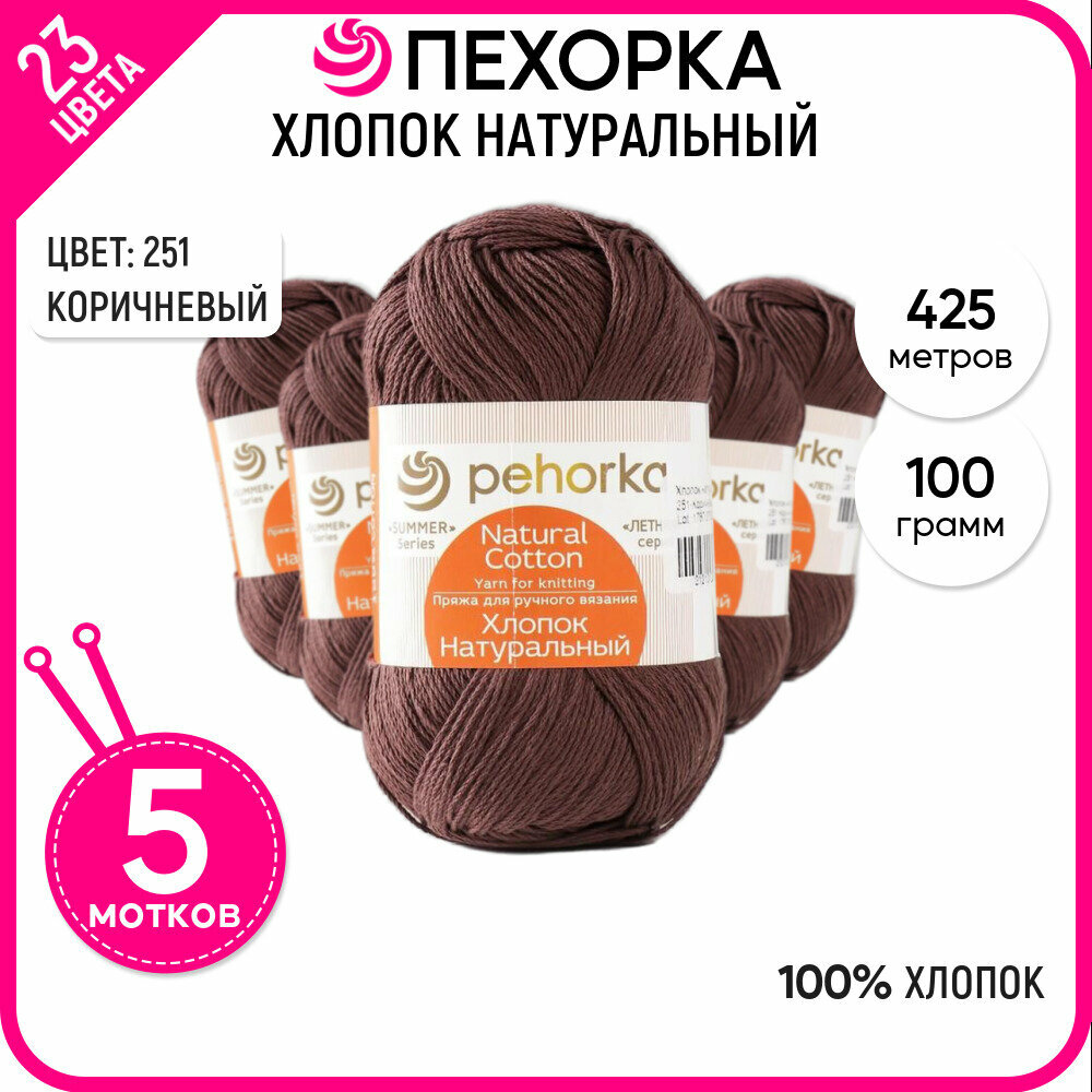 10 цен на Пряжа Пехорка Хлопок натуральный коричневый (251), 100%хлопок, 425м, 100г, 5шт