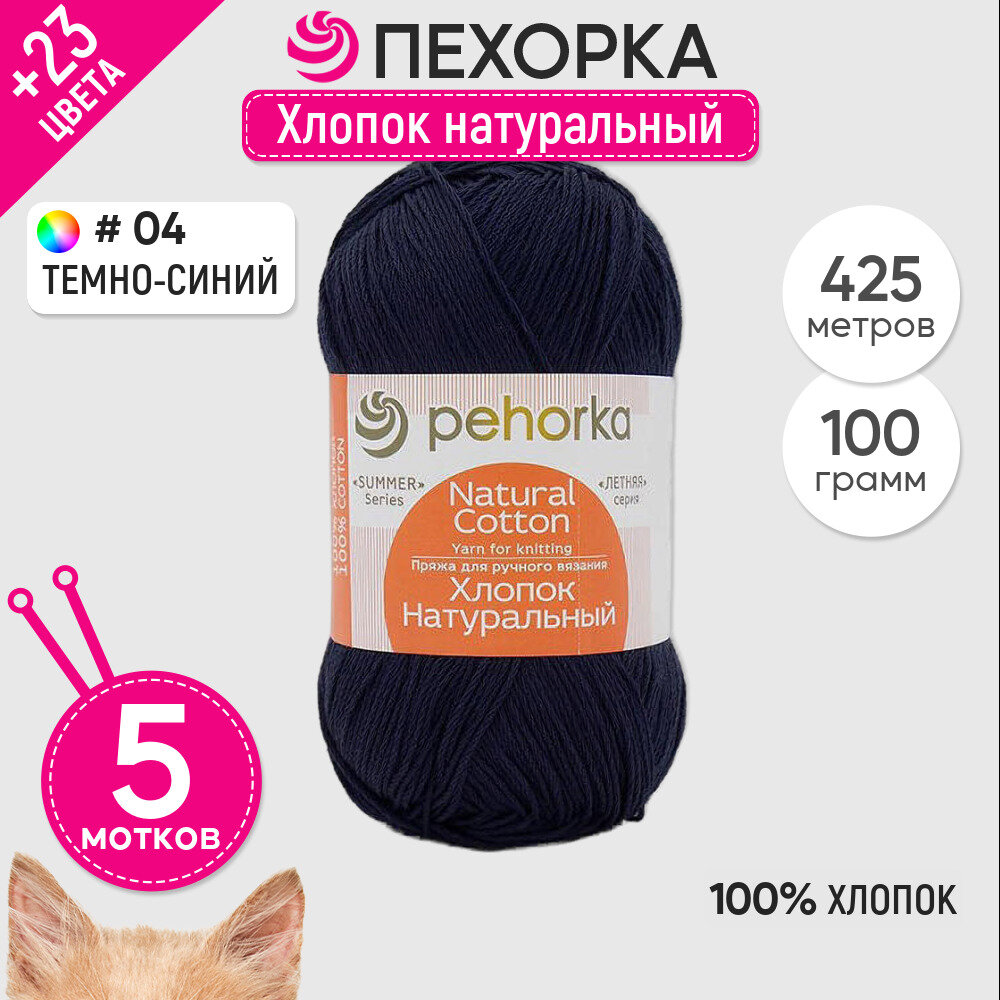 10 цен на Пряжа 5 шт Пехорка "Хлопок натуральный Кабле" темно-синий (04)