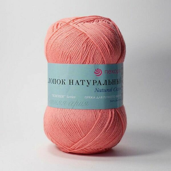 Пряжа для вязания Пехорка 'Хлопок натуральный 'Кабле' 100г, 425м (100% хлопок) (283-Лосось), 5 мотков