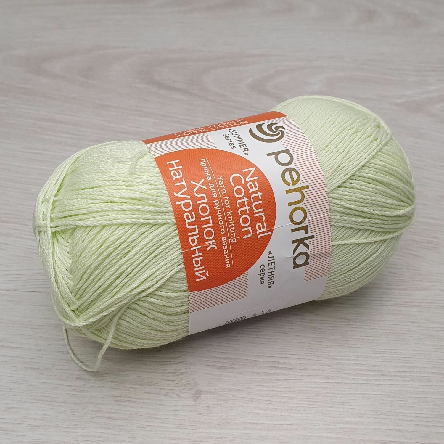 Пряжа для вязания крючком, спицами Пехорка Pehorka Хлопок натуральный тонкая, хлопок 100%, цвет 041 салатовый, 5 шт. по 100 г, 425 м информация: