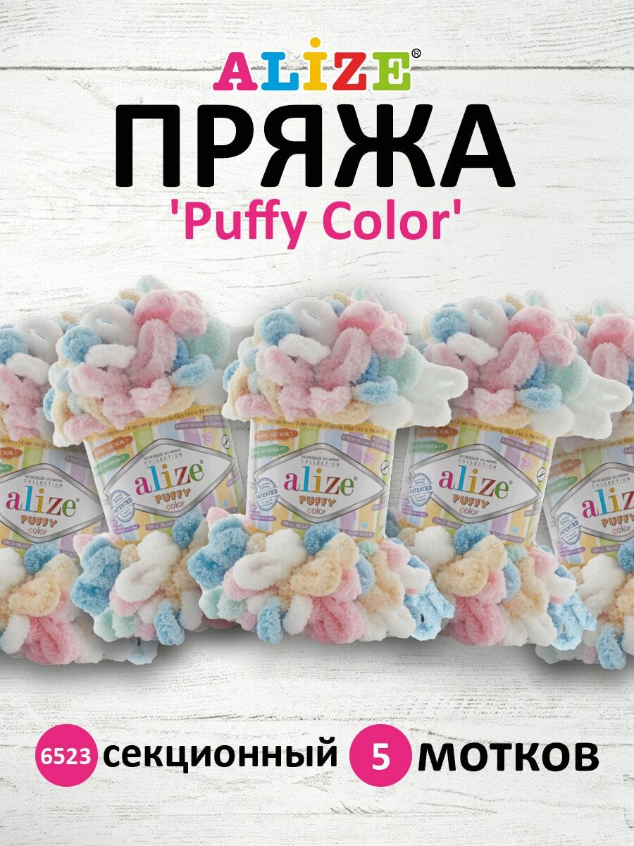 10 цен на Пряжа для вязания ALIZE 'Puffy Color', 100г, 9м (100% микрополиэстер) (6523 секционный), 5 мотков