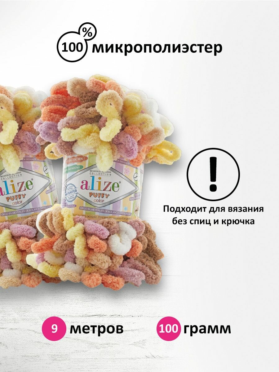 10 цен на Пряжа для вязания ALIZE 'Puffy Color', 100г, 9м (100% микрополиэстер) (6531 секционный), 5 мотков
