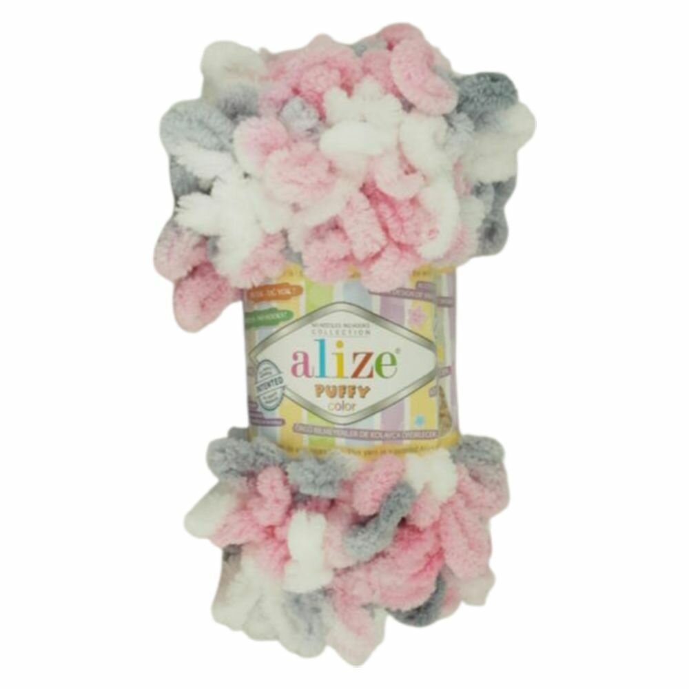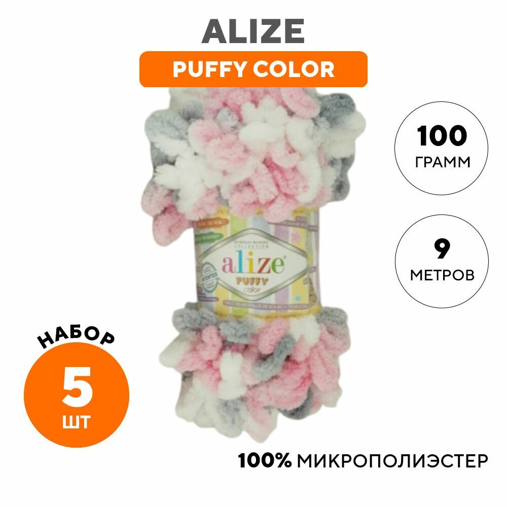 Пряжа PUFFY COLOR (Alize), розовый/серо-голубой/белый - 5864, 100% микрополиэстер, 5 мотков, 100 г, 9 м.