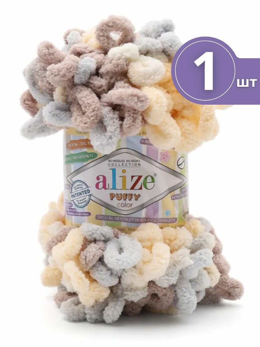10 цен на Пряжа Alize Puffy color серый-жёлтый-коричневый (6463), 100%микрополиэстер, 9м, 100г, 1шт