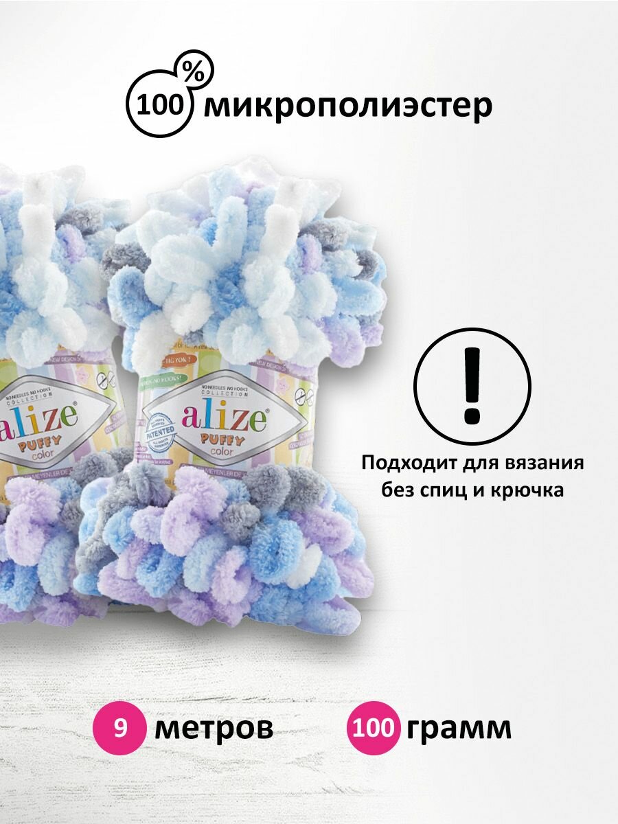 Пряжа Puffy Color Alize (5926), 100г, 9м, 100% микрополиэстер (2 шт.)