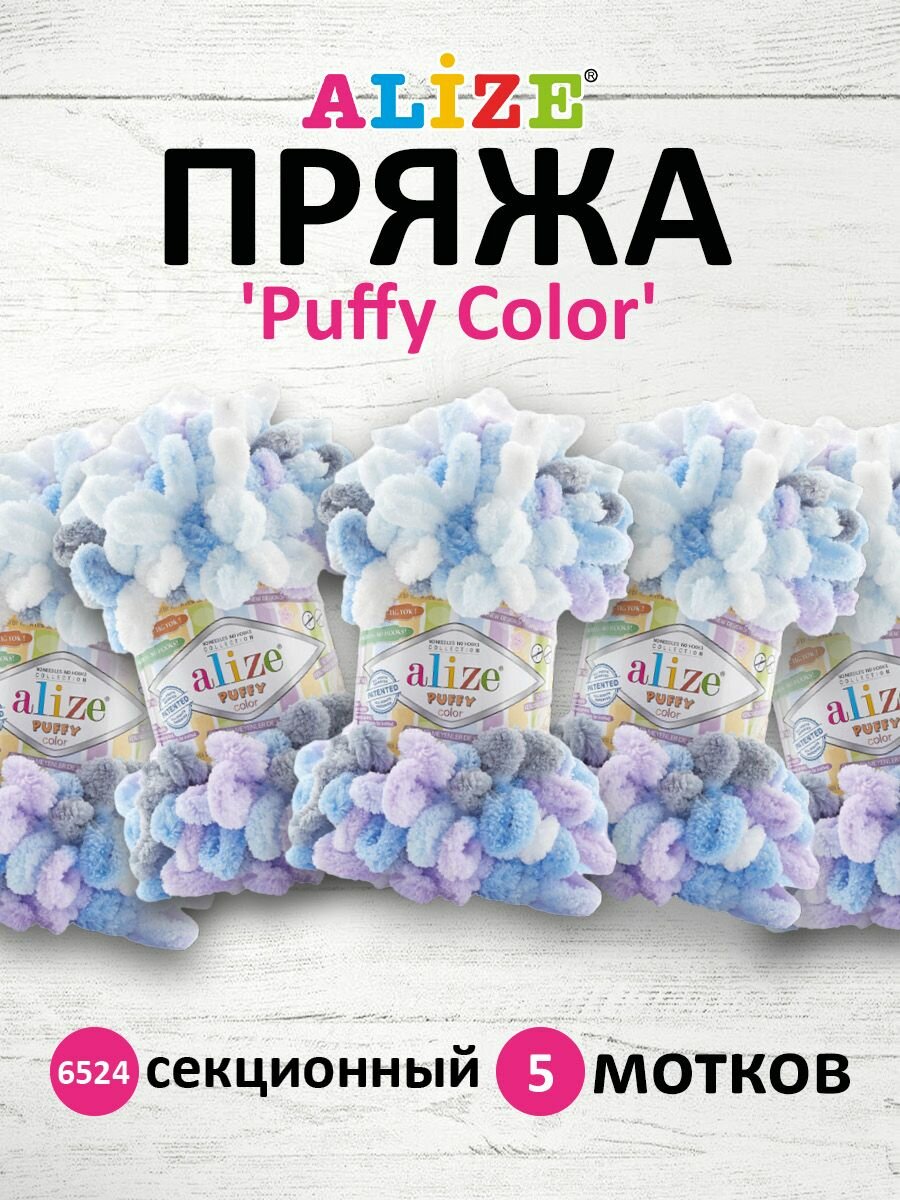 10 цен на Пряжа для вязания ALIZE 'Puffy Color', 100г, 9м (100% микрополиэстер) (6524 секционный), 5 мотков