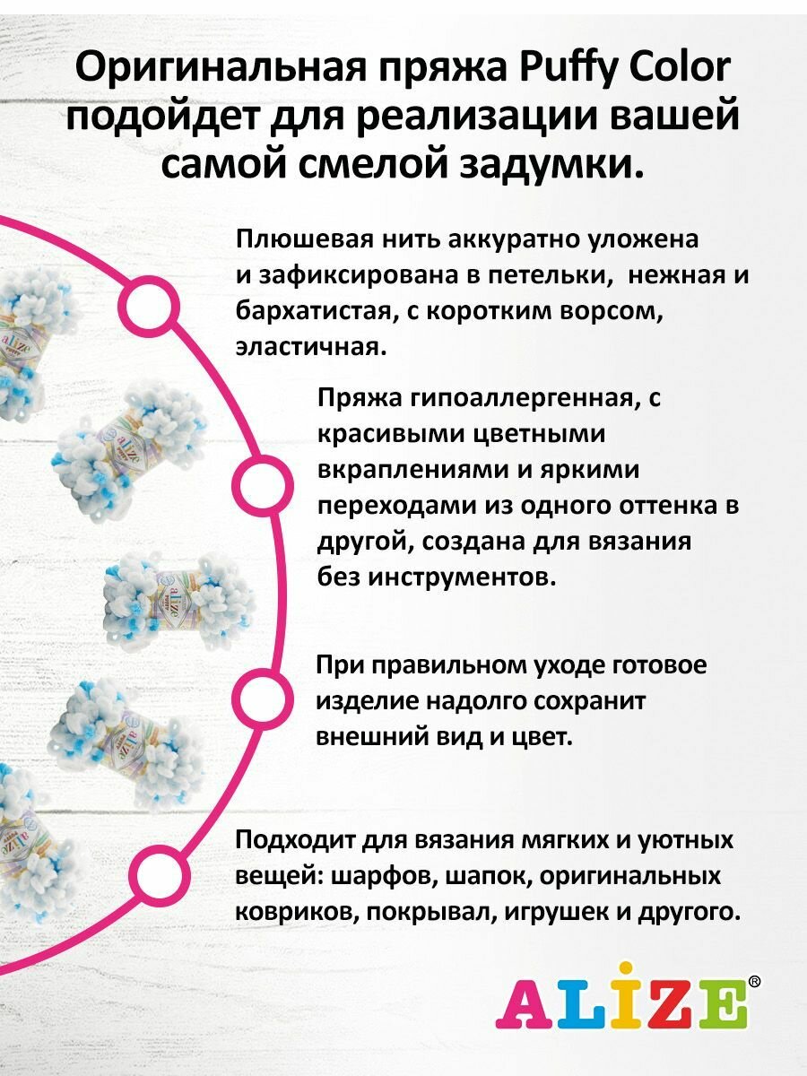 10 цен на Пряжа для вязания ALIZE 'Puffy Color', 100г, 9м (100% микрополиэстер) (6472 секционный), 5 мотков