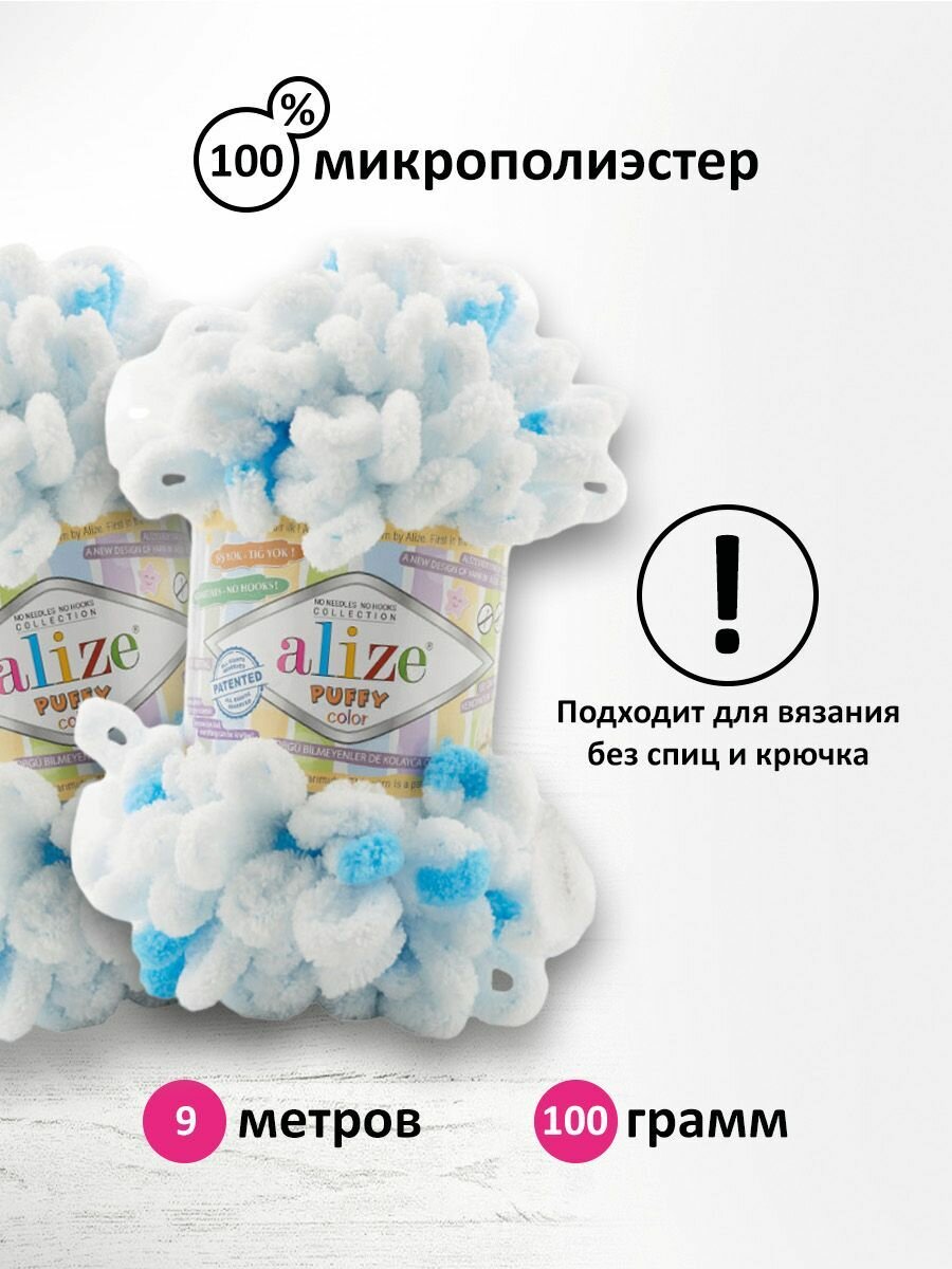 Пряжа PUFFY COLOR (Alize), бело-голубой - 5865, 100% микрополиэстер, 5 мотков, 100 г, 9 м.