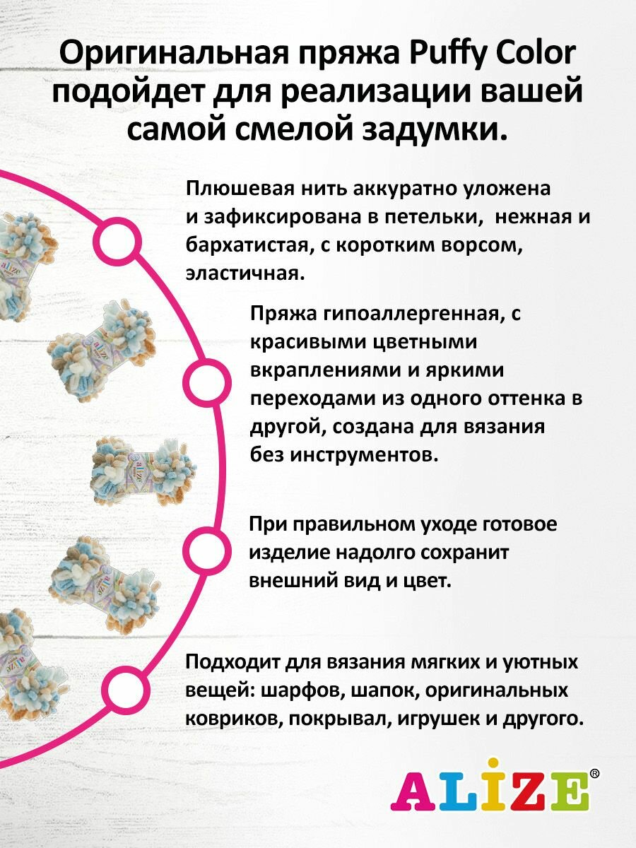 Пряжа для вязания ALIZE 'Puffy Color', 100г, 9м (100% микрополиэстер) (6530 секционный), 5 мотков информация: