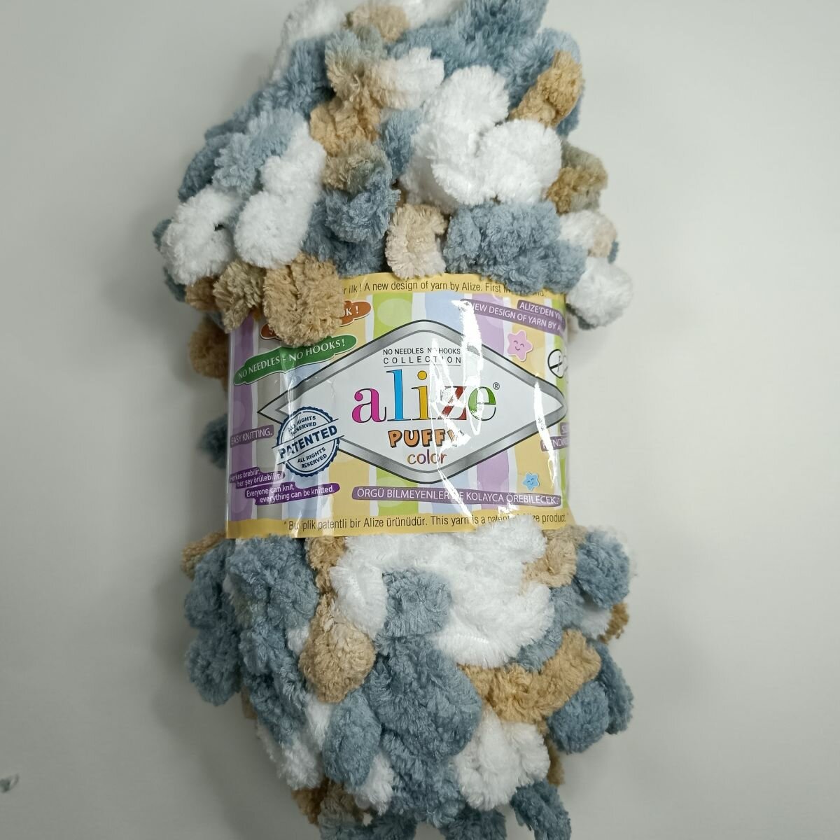 Пряжа PUFFY COLOR (Alize), бело-голубой - 5865, 100% микрополиэстер, 5 мотков, 100 г, 9 м.